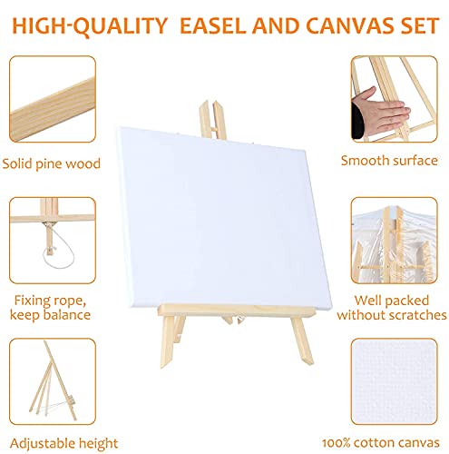 Easel Set 58 Pcs Painting Set(7 Pcs 14 Inch Easel+7Pcs 8x10 Paint Canvas+40 Brushes+4 Palettes) Painting Supplies Kit with Easels for Adults&Kids&Painting&Display&Sip and Paint&Painting Party