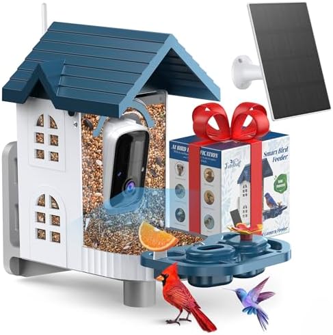 Smart Bird Feeder with Camera for Hummingbird: Vicohome 2K Outdoor AI Solar Powered Wireless WiFi Cam Birdhouse Outside Squirrel Proof Birdfeeder Watching Nest Video Birding Lover Gift Blue Large