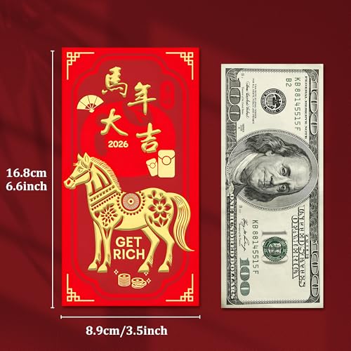 OHOME Chinese New Year Red Envelopes - 2026 New Years Eve Party Supplies | New Years Decorations - Lunar New Year Envelopes | Chinese New Year Gifts - Lunar New Year Gifts | Red Envelope Horse