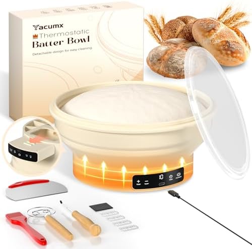 Electric Sourdough Starter Kit with 6-Temp (77-122℉) Control & Timer - 9" Foldable Sourdough Bread Baking Supplies & Dough Warmer - Complete Banneton Bread Proofing Basket Set for Artisan Home Bakers