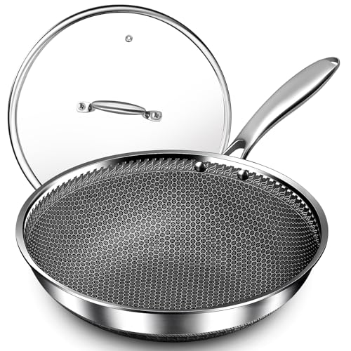 Carbon Steel Wok -13 Inch Woks & Stir-fry Pans Nonstick, Wok Pan with Glass Lid Spatula