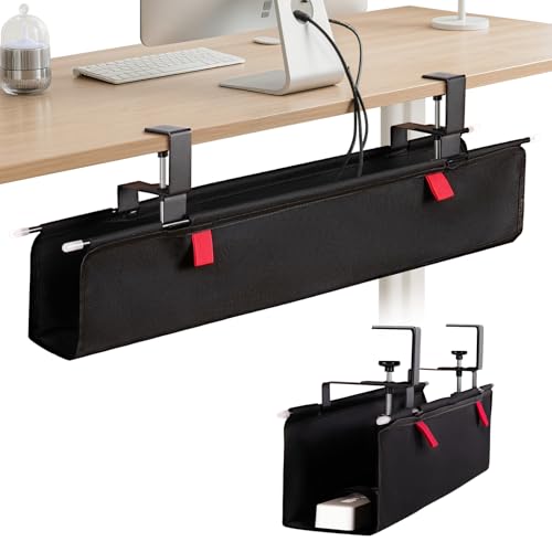 CrsaSwivo No Drill Under Desk Cable Management Tray - 28" Cord Management Under Desk - No Drill Needed - Easy Clamp - Premium Fabric Cable Management Tray for Office/Home