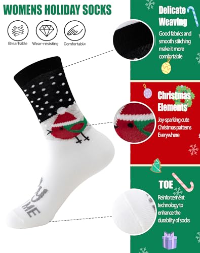 Christmas Socks for Women 6 Pairs Womens Funny Novelty Crew Socks Fun Cute Holiday Gifts for Women Girls