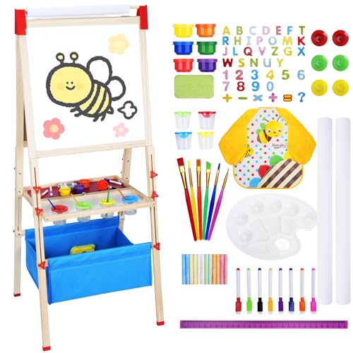 Art Easel for Kids: Wooden Adjustable Height Magnetic Double-Sided Foldable Painting Board for Toddlers 2-4