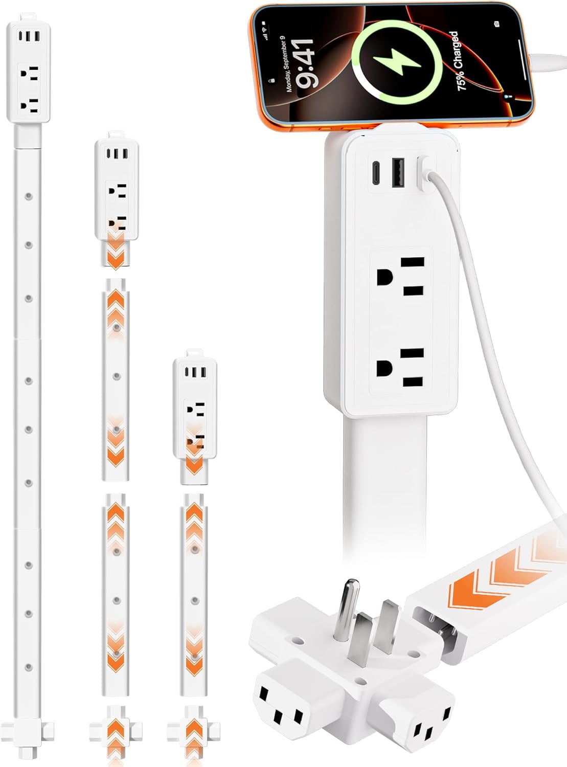Electrical Outlet Extender Stick Features 2 USB-A, USB-C and 2 AC Outlets, Extendable to 6", 15.3", 24.5", 34", for Hard to Reach Spaces Use Behind Couches, Nightstands, E-Sports Desks, and More