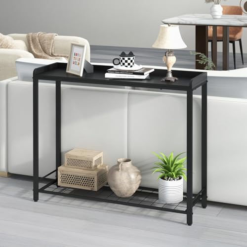 Livofloral 39.4" Entryway Table with Metal Grid Shelves