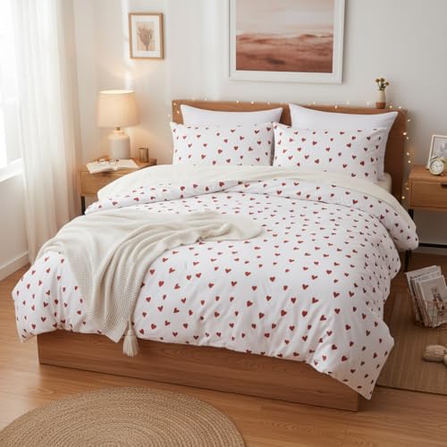 Nayoroom Heart Comforter Set Queen Size Kawaii Red Heart Pattern Comforter Kids Girls Cute Heart-Shaped 3Pcs Soft Lightweight Bedding Set for All Seasons (1 Comforter
