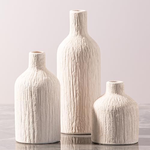 Ceramic Vase Home Table Decor - White Flower Vase Set of 3 Living Room Kitchen Decorations Farmhouse Modern Rustic Vases Decorative Centerpiece for Shelf Bedroom Office Bathroom Dining Coffee Desk