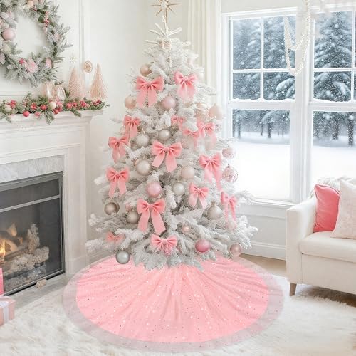 yuboo Blush Pink Fluffy Tulle Christmas Tree Skirt