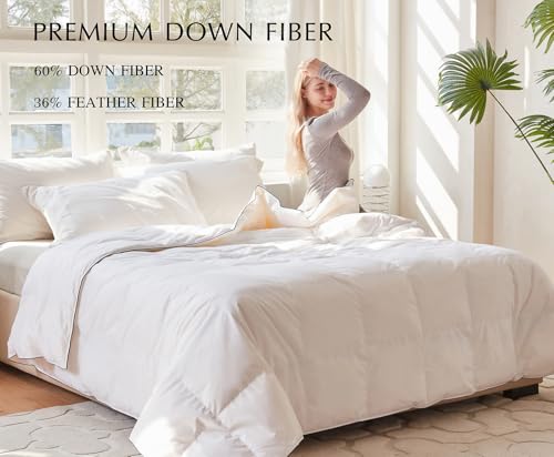 39 Oz Fill Weight Premium Down Fibers Comforter White Medium Warmth Twin Size All Season Duvet Insert with Corner Tabs (68"X90" White All Season)